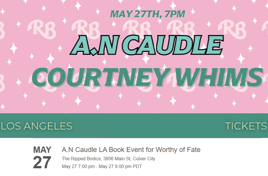 To celebrate the release of Worthy of Fate, we're hosting an LA book event with A.N Caudle on Wednesday, May 27th at 7pm. She'll be in conversation with author Courtney Whims.